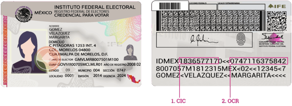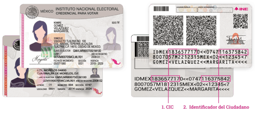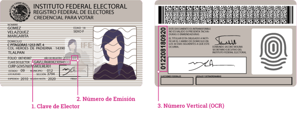 Para realizar la validación, es necesario obtener ciertos datos. Estos se deben de identificar en la credencial y varían dependiendo el modelo: