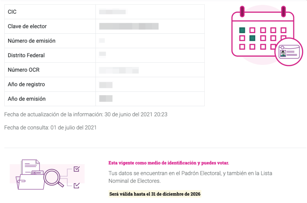 En breve, aparecerán los datos de la credencial, el estatus y la fecha de vencimiento.