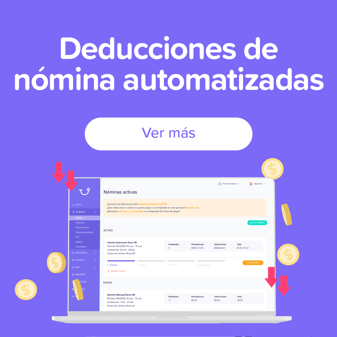 En Runa HR contamos con un software sin precedentes en América Latina. En el cual todos los cálculos de nómina para empleados se hacen de manera automática, incluyendo la prima vacacional. No más cálculos a mano, ni más errores… Runa hace tu nómina más rápida, fácil y agradable.