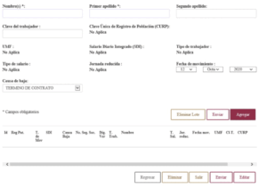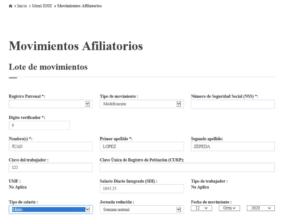 - Se ingresa el tipo de movimiento: Alta, baja o cambio, la fecha de aplicación y los datos del trabajador