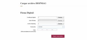 - Nos dirigimos desde la pantalla de movimientos afiliatorios (con scroll) hacia cargar archivos dispmag, donde visualizamos un formulario que permite la carga del archivo: